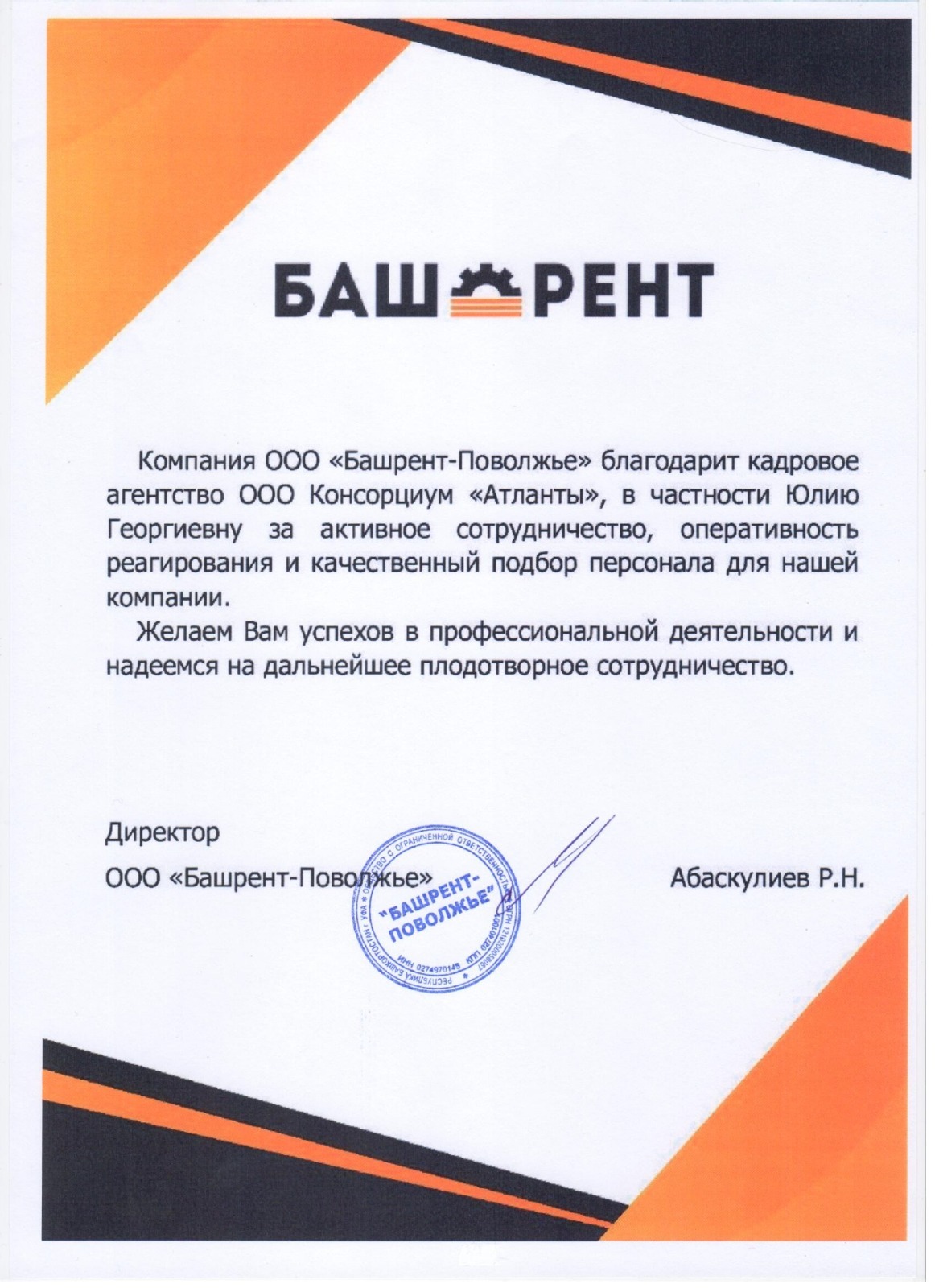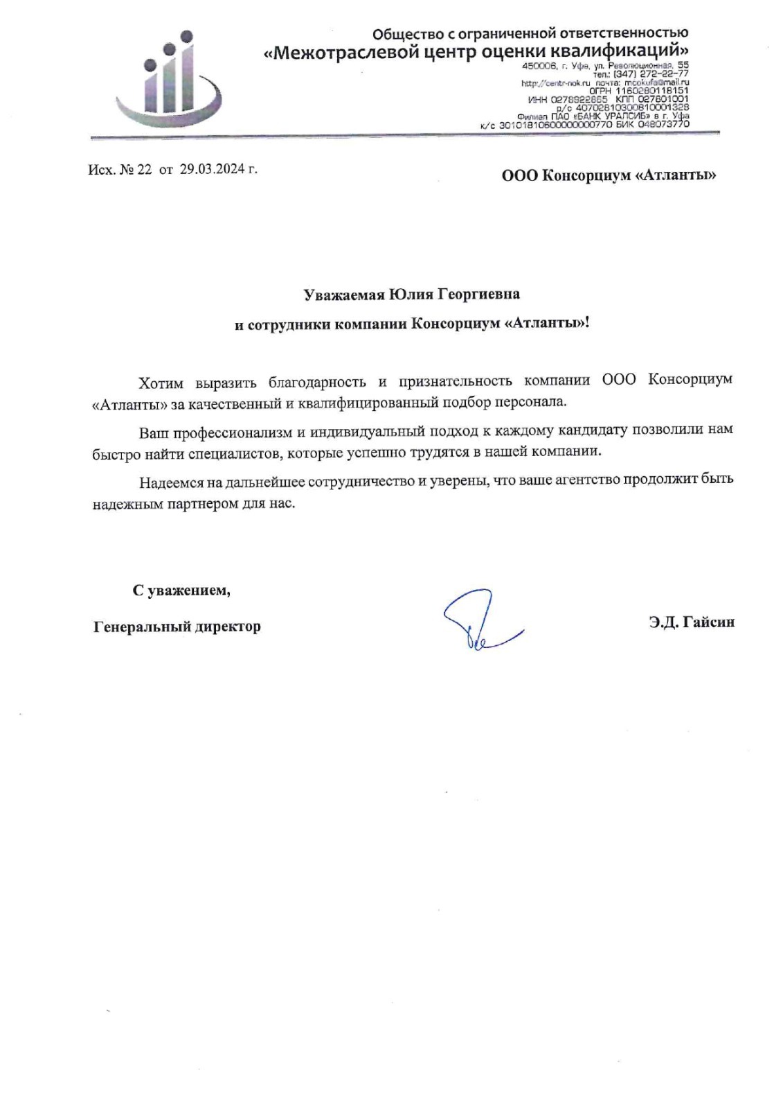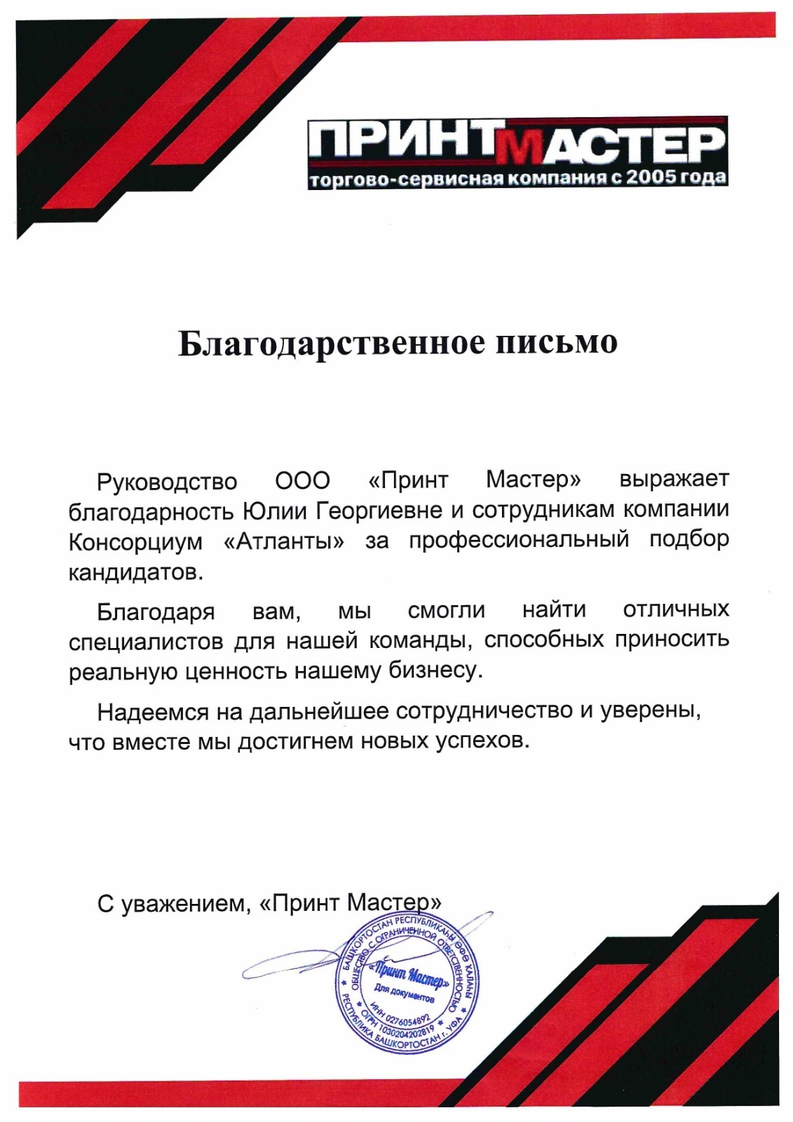 Благодарственные письма от руководителей, которые уже воспользовались нашими услугами