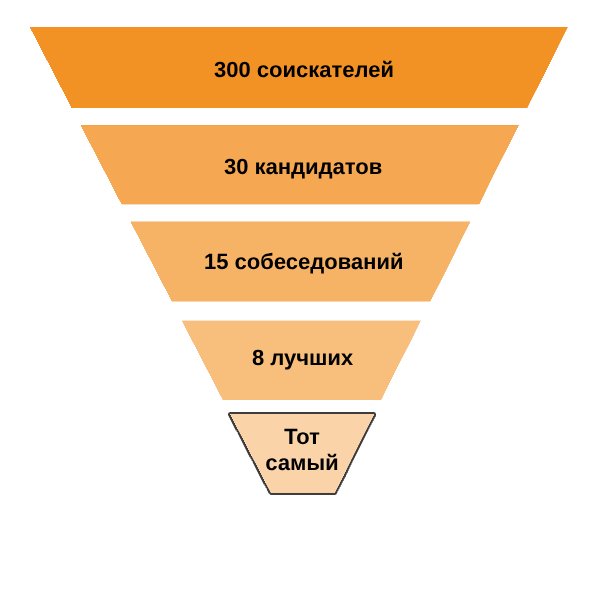 30 релевантных кандидатов Проверяем по требованиям идеального кандидата, отсеиваем тех, кто не подошел